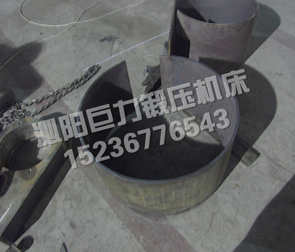 The working part is mainly composed of upper and lower work rolls, left and right frame and base. The two lower rolls are symmetrically arranged relative to the upper roll. The two ends of the lower roll are respectively assembled on the left and right frame. The upper roll is the main driving roll. When rolling sheet metal, the main motor drives the upper roll to move forward and backward through the reducer, thus constituting the machine. The main drive system of the device is driven by an oil cylinder. In order to quickly remove the workpiece after the end of the cylinder rolling, a hydraulic overturning bearing body is arranged at the left end of the upper roller and the workpiece is turned open by the cylinder. The oil cylinder quickly releases the workpiece, and the upper end of the upper roller is equipped with a compressing device to balance the gravity when the upper roll is suspended.