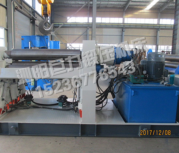 該四輥卷板機(jī)與對稱三輥卷板機(jī)比較,它可以不借助其它設(shè)備模具,直接予彎板材端部,而且剩余直邊較?。凰梢圆皇拱宀恼{(diào)頭,而卷成工件。