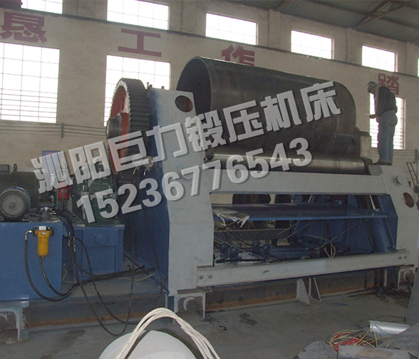 該四輥卷板機(jī)與對稱三輥卷板機(jī)比較,它可以不借助其它設(shè)備模具,直接予彎板材端部,而且剩余直邊較?。凰梢圆皇拱宀恼{(diào)頭,而卷成工件。